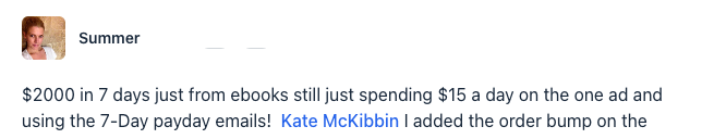 "This is my third day running ads to my new funnel, and I've consistently made 3 sales a day off just a $30 ad spend. Time to up the budget I think! " - Loni